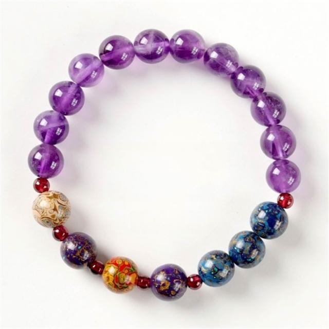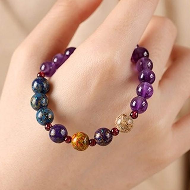 EMMA SUE水晶單圈串珠手飾 石榴石配飾 紫水晶手串 大漆轉運珠手鍊 圓珠 飾品