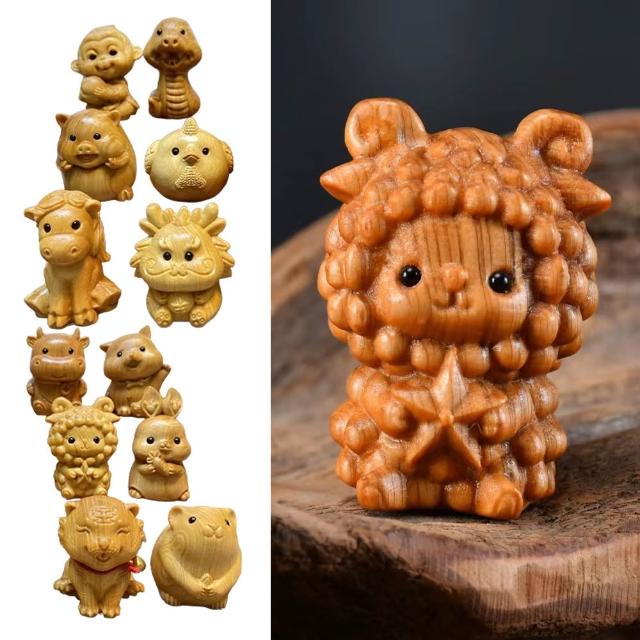 EMMA SUE崖柏木 十二生肖 木雕 擺件 本命年 生肖守護神 手工雕刻 吉祥物 家居 飾品 工藝品