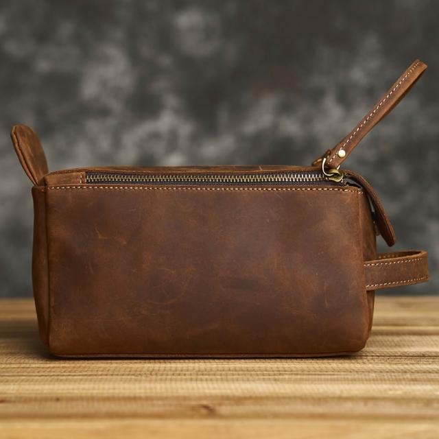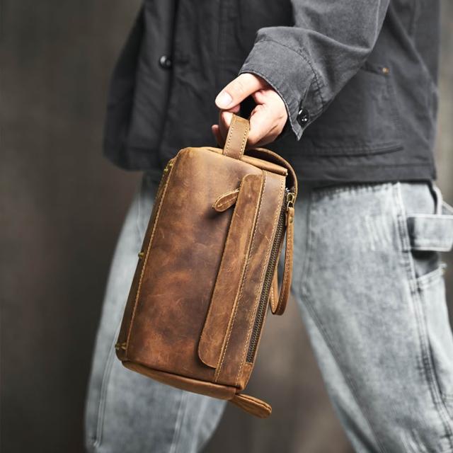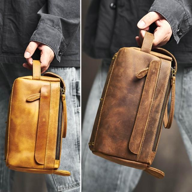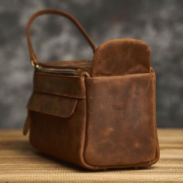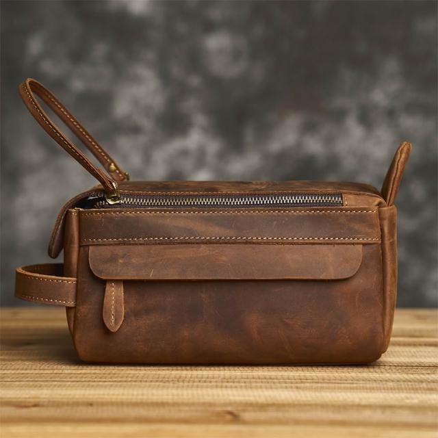 EMMA SUE多功能收納包 男生包包 瘋馬皮箱包 真皮手提包 化妝包 盥洗包 旅行包 大容量方包