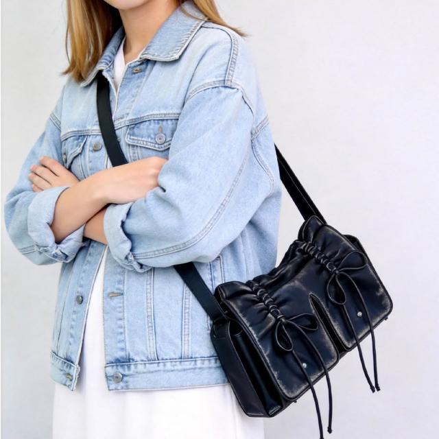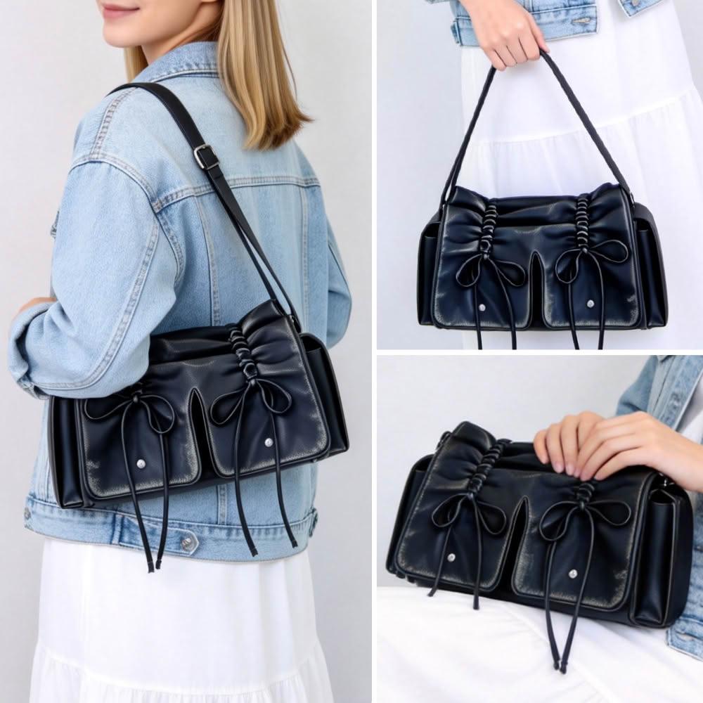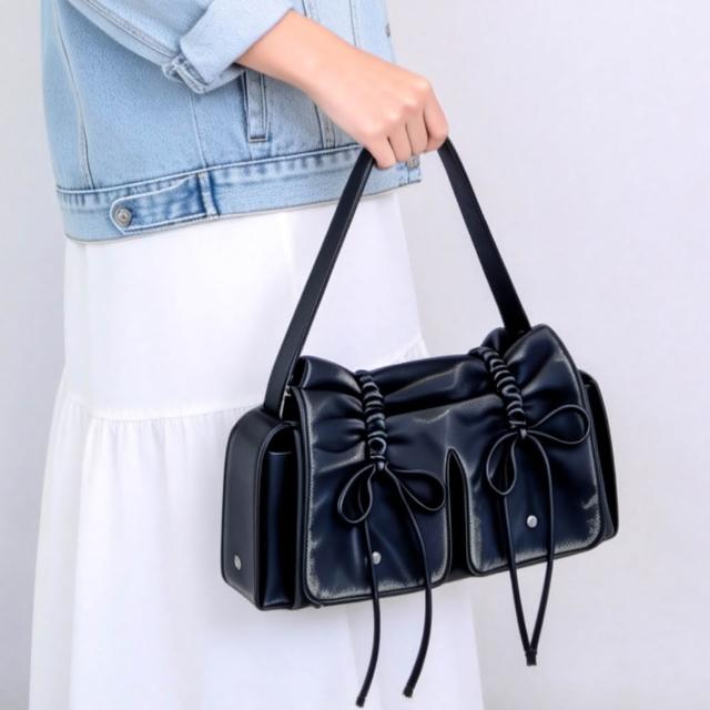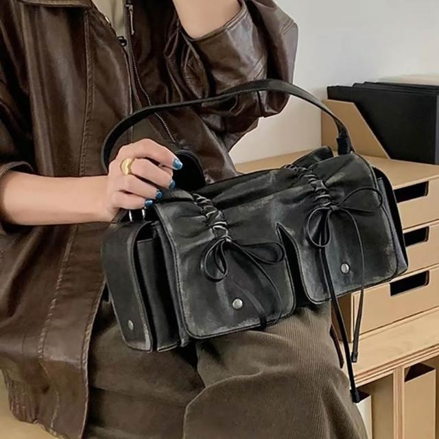 EMMA SUE單肩包 百搭包包 腋下包 女生包包 蝴蝶結包包 通勤包 褶皺包 韓系包包 包包 大容量包包 側背包 復古包包