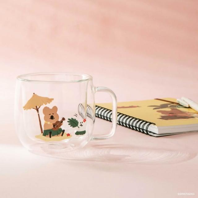 DINOTAENG 雙層玻璃杯 水杯 咖啡杯 矮袋鼠 Alpaca韓國文創