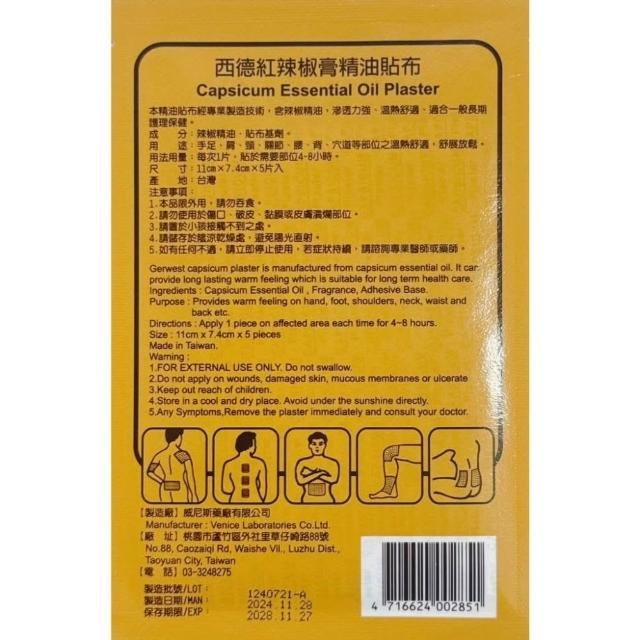 西德 紅辣椒膏精油貼布 嫦娥辣椒膏貼布 精油貼布 貼布