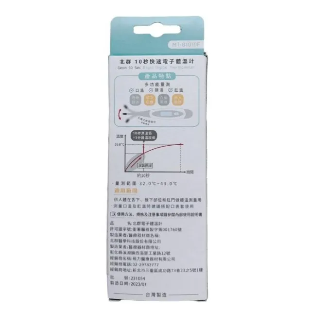 健康與美麗 電子體溫計/基礎體溫計(1入) 仁仁藥局 北群10秒快速電子體溫計 體溫溫度計