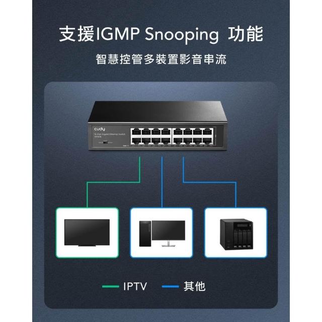 cudy GS1016 16埠 Gigabit桌上型交換器 金屬殼 VLAN 商用交換器