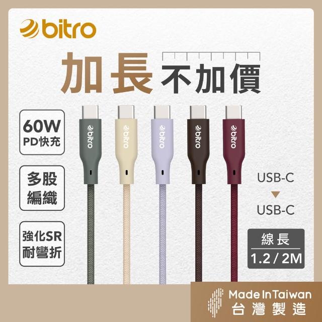 bitro Type-C to C 60W充電傳輸線 1.2M 手機 蘋果 安卓 MAC 筆電 充電線 台灣製造