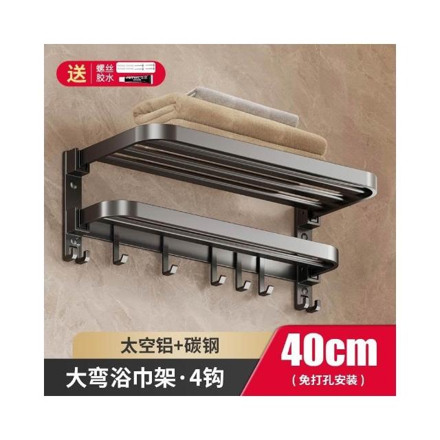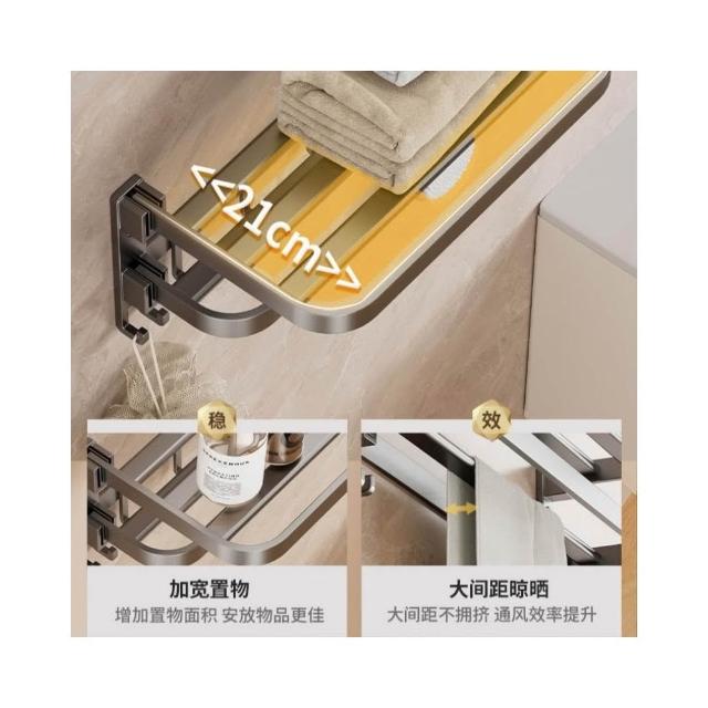 太空鋁雙折疊浴巾架 免打孔毛巾架 毛巾架 浴巾架 壁掛浴巾架 浴室毛巾架 浴室收納架 浴室置物架
