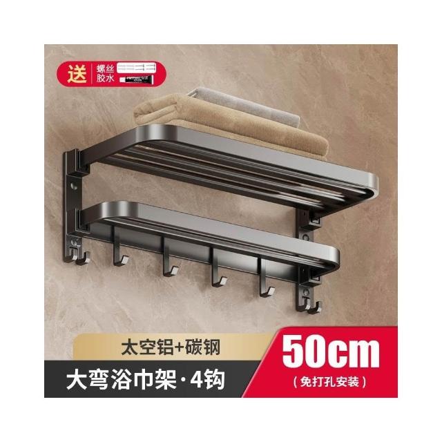 太空鋁雙折疊浴巾架 免打孔毛巾架 毛巾架 浴巾架 壁掛浴巾架 浴室毛巾架 浴室收納架 浴室置物架
