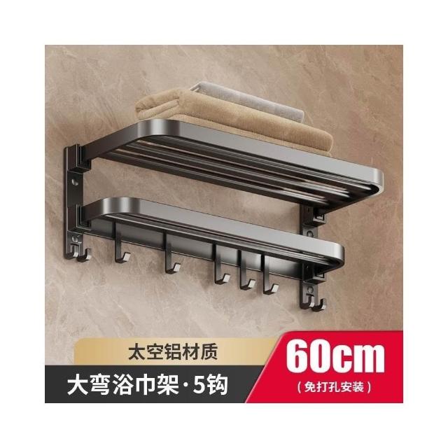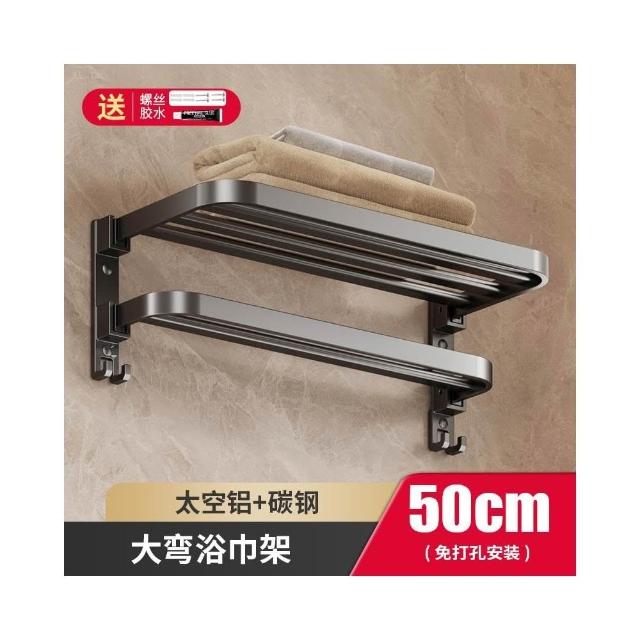 太空鋁雙折疊浴巾架 免打孔毛巾架 毛巾架 浴巾架 壁掛浴巾架 浴室毛巾架 浴室收納架 浴室置物架