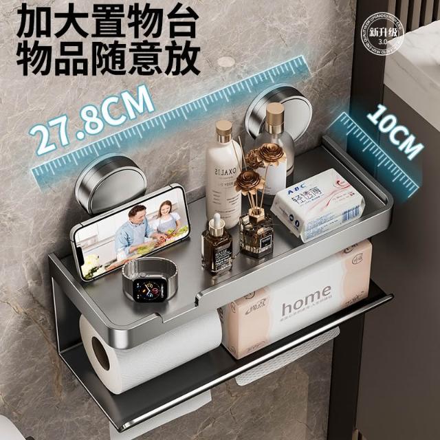 吸盤置物架 太空鋁衛生紙架 免打孔紙巾架 浴室面紙盒 紙巾盒 雙抽衛生紙架 雙層面紙架 浴室置物架
