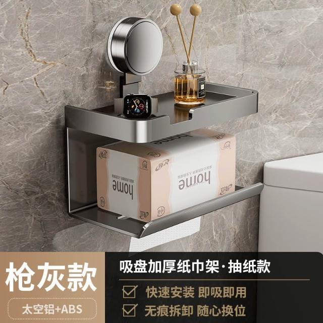 吸盤置物架 太空鋁衛生紙架 免打孔紙巾架 浴室面紙盒 紙巾盒 雙抽衛生紙架 雙層面紙架 浴室置物架