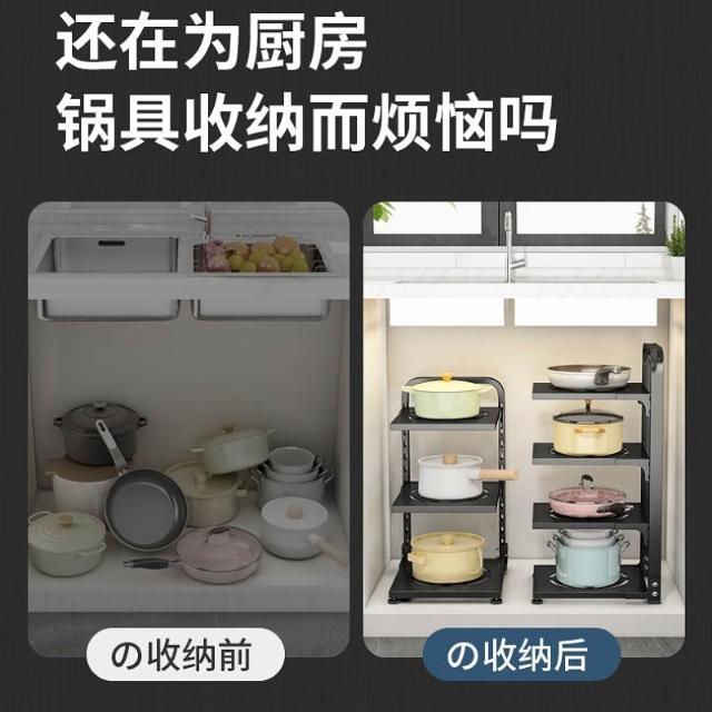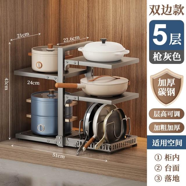 可調式多層鍋架 廚具收納架 高度可調 鍋具收納架 廚房收納架 鍋具收納層架 廚房置物架 廚房鍋架 廚房層架