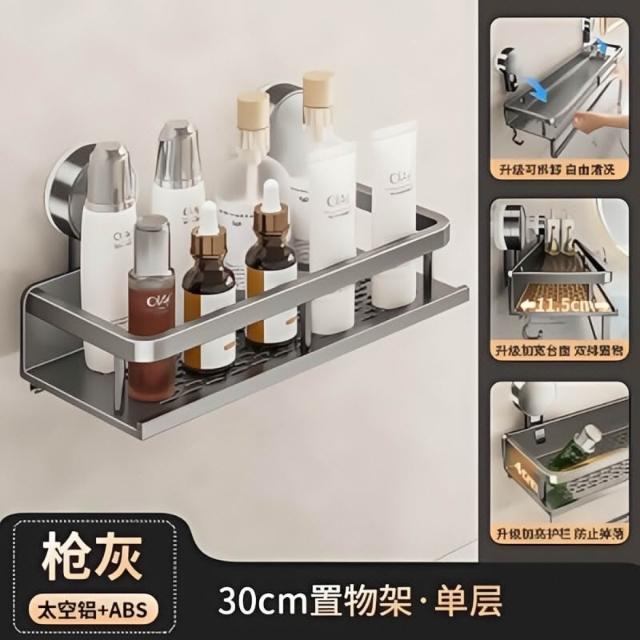 太空鋁浴室置物架 吸盤浴室架 免打孔壁掛 廁所置物架 太空鋁四方架 沐浴乳架 浴室收納架 吸盤置物架