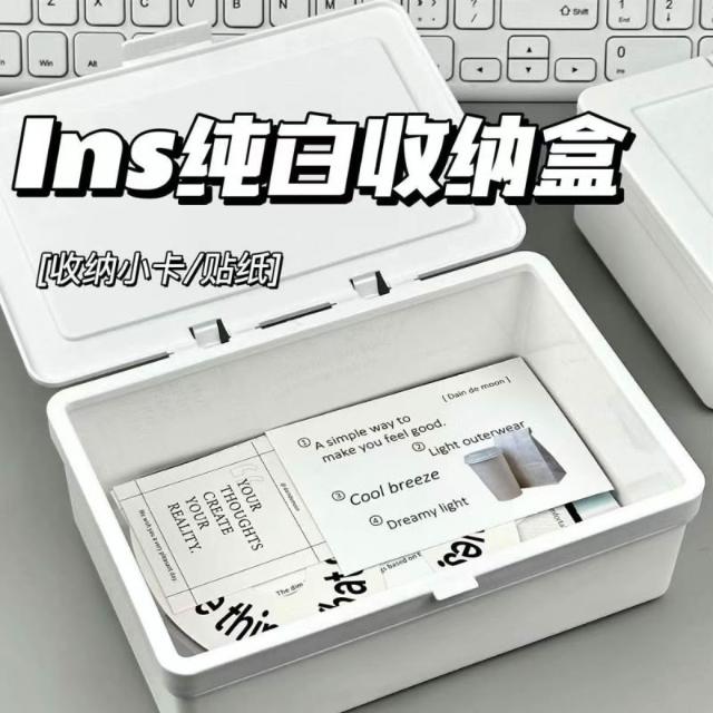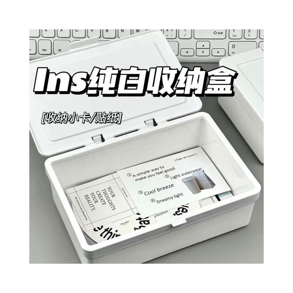 ins無印風收納盒 收纳箱 收纳盒 白色翻蓋收納盒 手賬素材收納盒 儲物盒 桌面文具整理盒 飾品收納盒 桌面收納盒