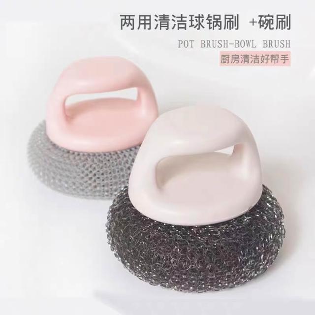 短柄鍋刷 清潔球 懶人清潔刷 鋼絲球 短柄帶球刷 鍋刷 洗碗刷 洗鍋刷 按壓式洗碗刷 菜瓜布 刷鍋神器