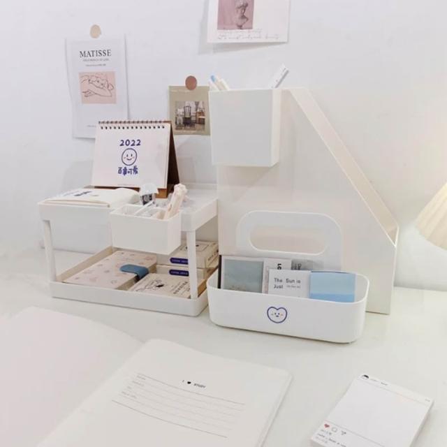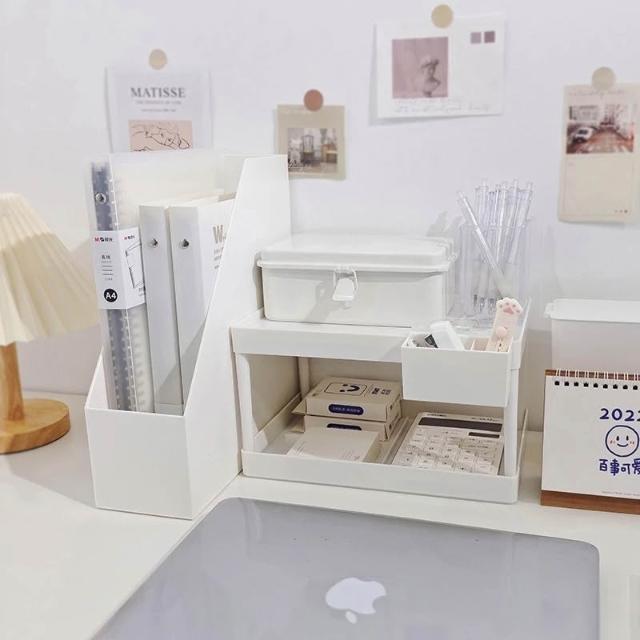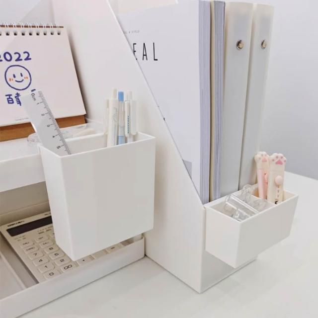 ins無印風 桌面置物架 兩層收納架 無印置物架 桌上收納 掛式雙格收納盒 掛式深筆筒 無印書架 桌面書架