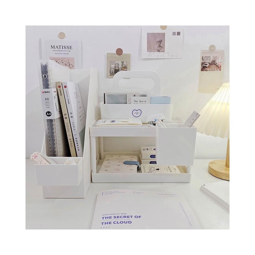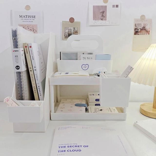 ins無印風 桌面置物架 兩層收納架 無印置物架 桌上收納 掛式雙格收納盒 掛式深筆筒 無印書架 桌面書架