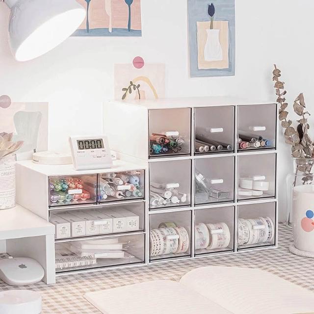 簡約 抽屜式收納盒 桌面收納盒 文具整理盒 化妝品收納 辦公室整理盒 收納盒 置物盒 透明抽屜盒 桌上收納
