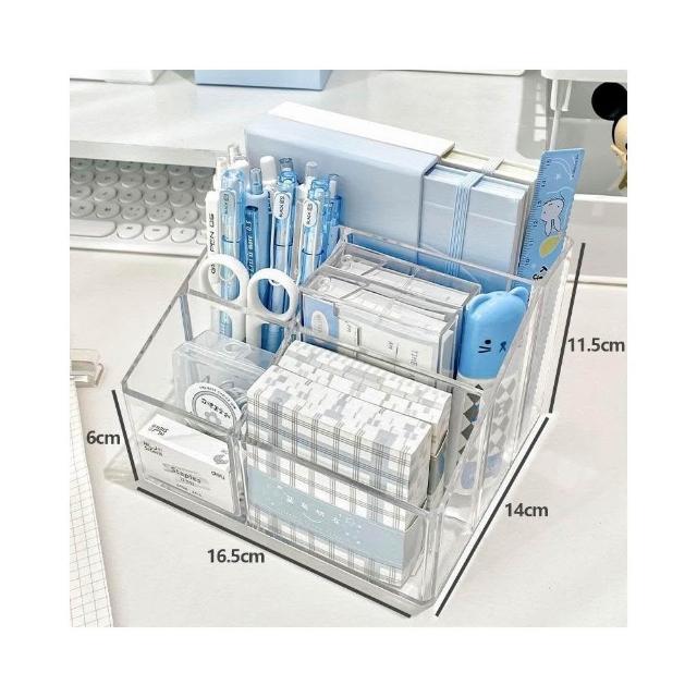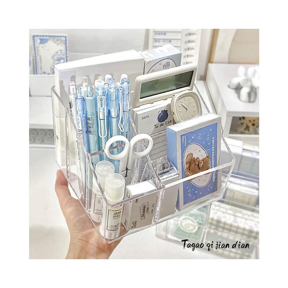 台灣出貨🏆五格筆筒 便簽收納盒 壓克力筆筒 透明筆筒 分格筆筒 分隔筆筒 多格收納盒 文具收納 辦公桌收納 桌面整理盒