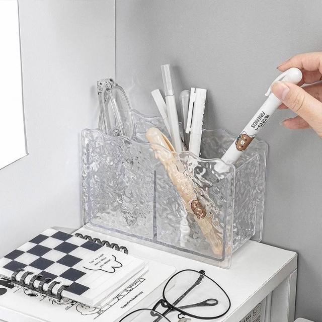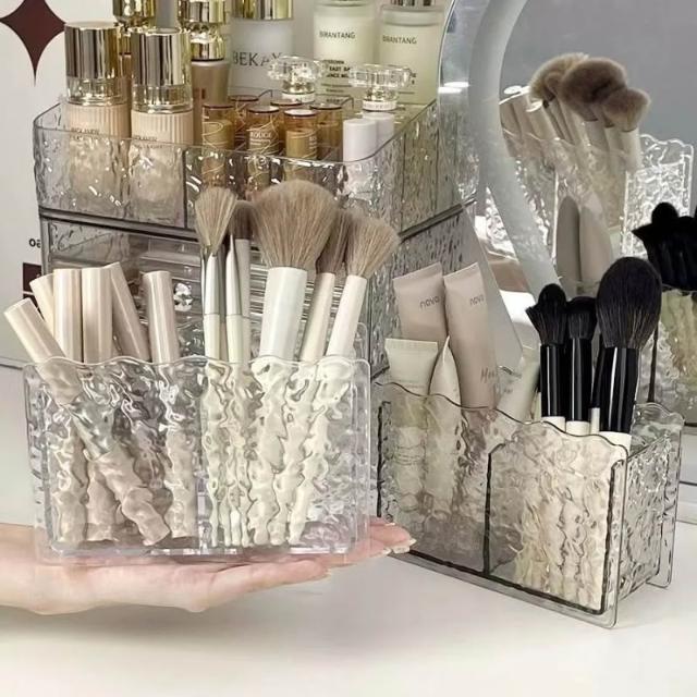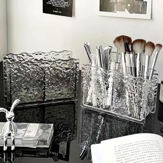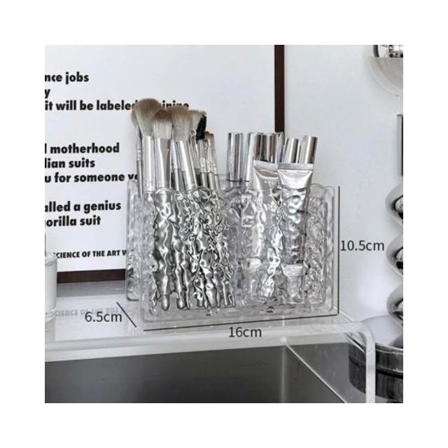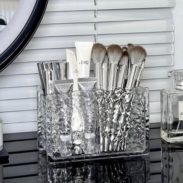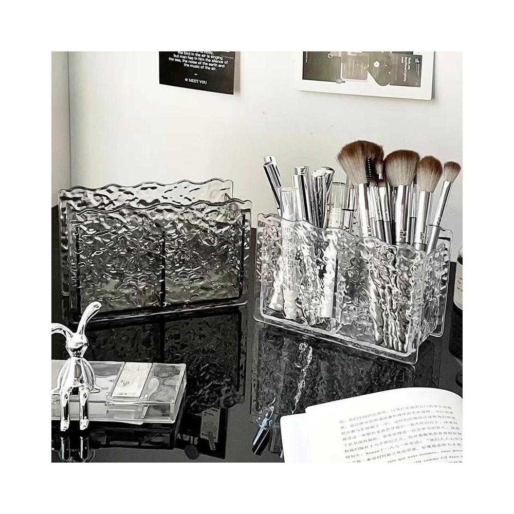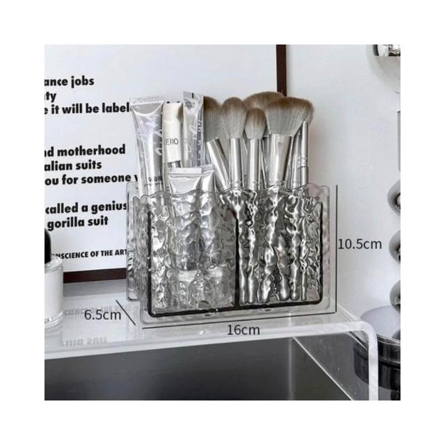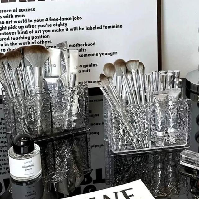 桌面收納筒 化妝刷收納筒 筆筒收納 冰川紋筆筒 壓克力筆筒 透明筆筒 分格筆筒 二格筆筒 化妝品收納