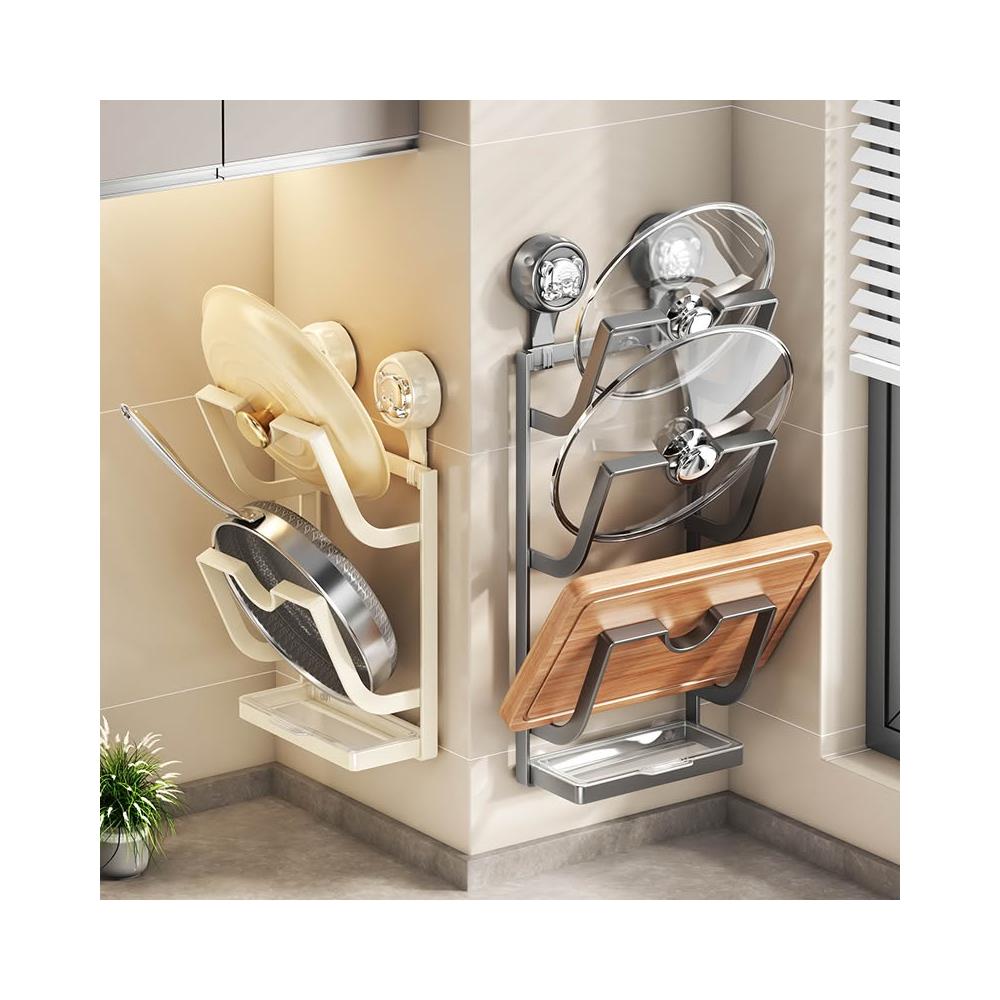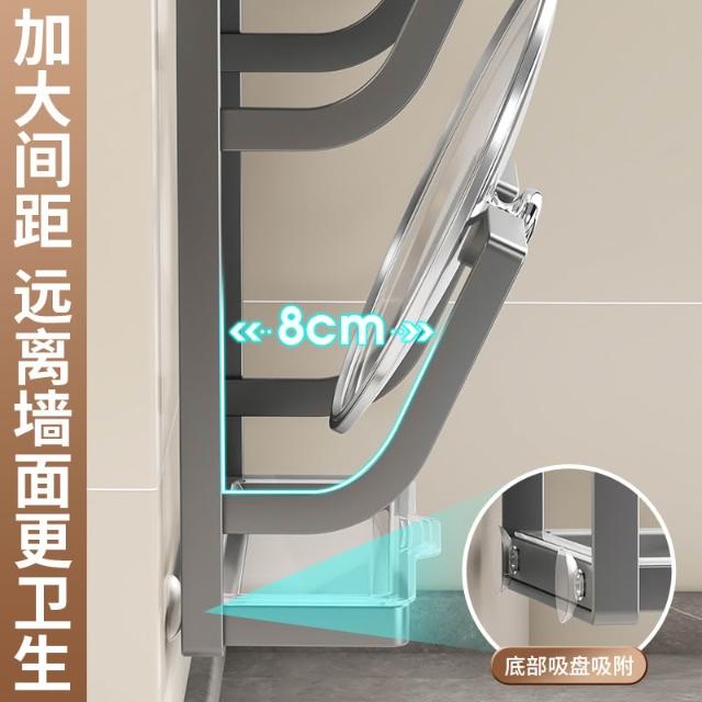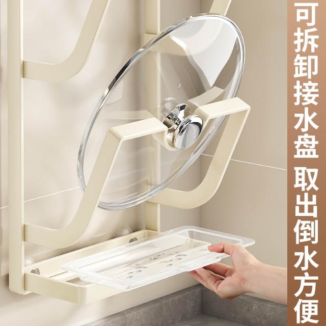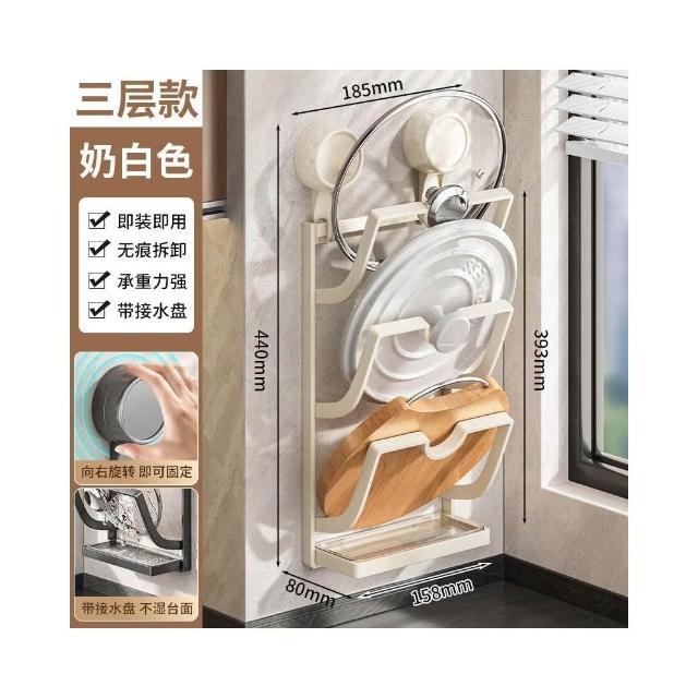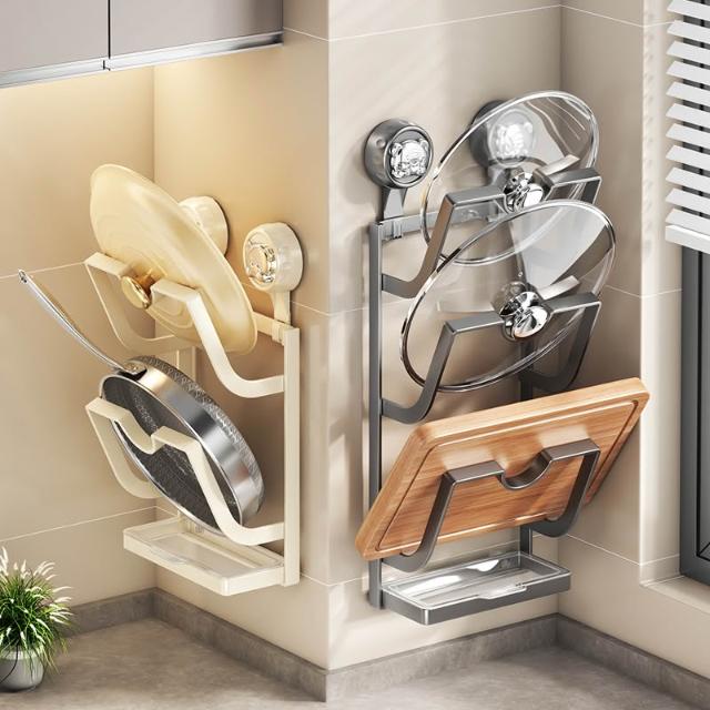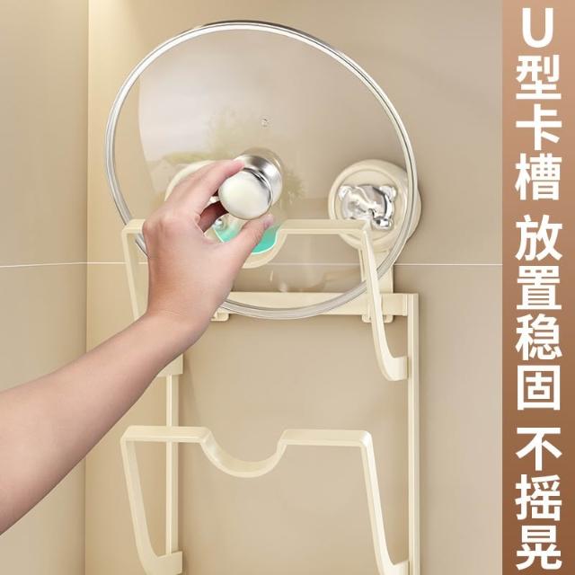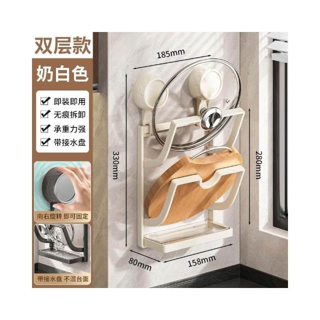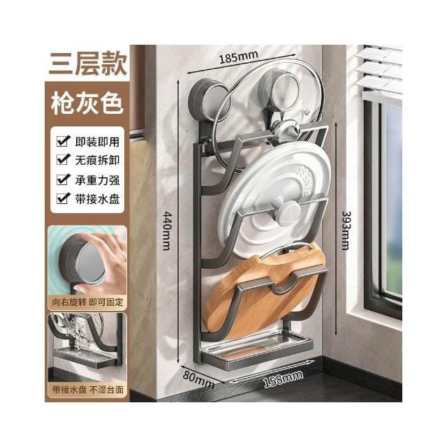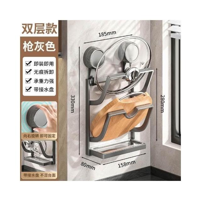 吸盤式鍋蓋架 厨房收納架 鍋蓋收納架 砧板架 鍋蓋瀝水架 多層置物架 壁掛免打孔 鐵藝菜板架 砧式收納架