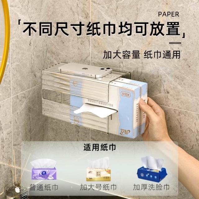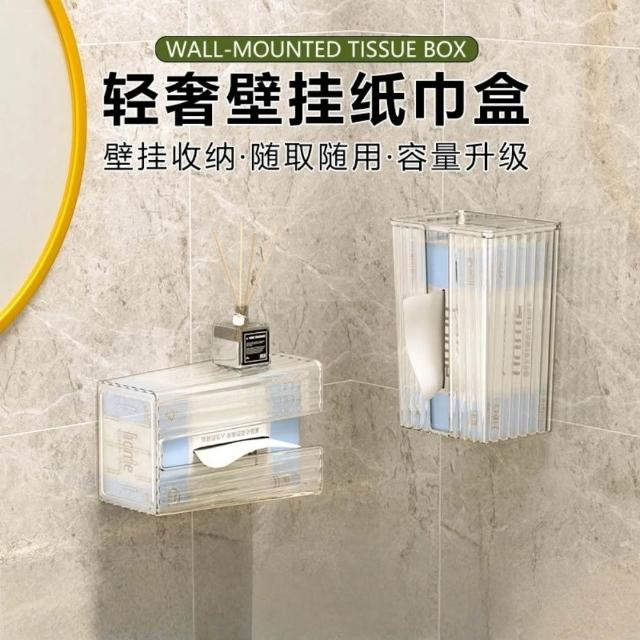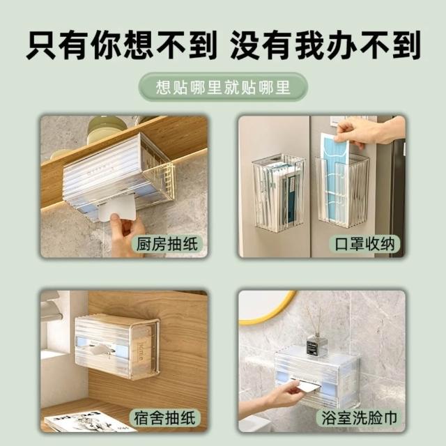 無痕壁掛面紙盒 面紙架 紙巾架 衛生紙盒 紙巾盒 防水面紙盒紙巾盒 壁掛式免打孔抽紙盒 洗臉巾輕奢收納盒