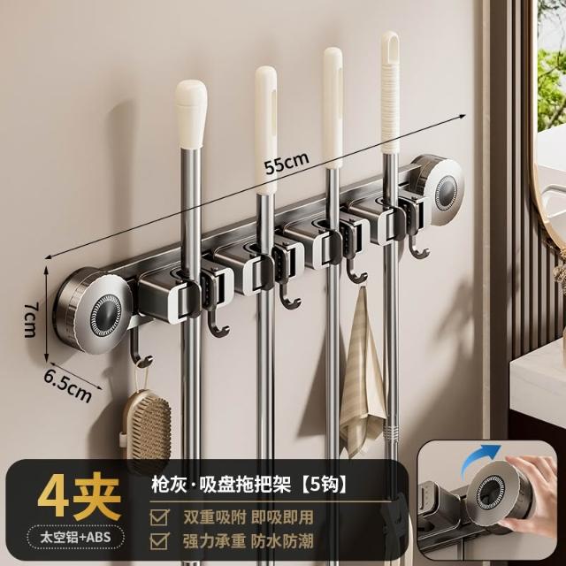 吸盤拖把夾 太空鋁掛勾拖把架 免打孔壁掛 拖把架 拖把掛鉤 掃把夾 拖把收納 吸盤置物架 浴室置物架