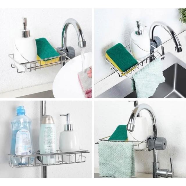 不鏽鋼水龍頭置物架 水槽置物架 菜瓜布架 菜瓜布收納架 水龍頭收納架 不鏽鋼置物架 不銹鋼瀝水架