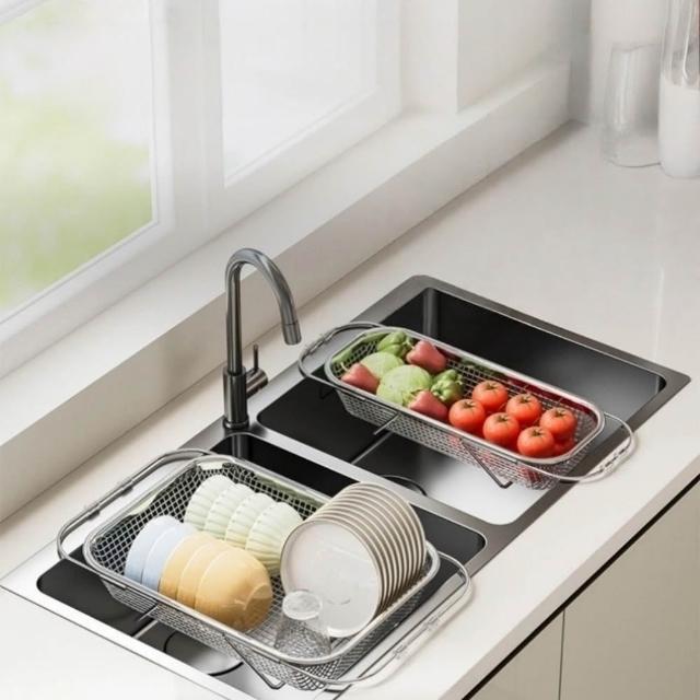 不鏽鋼瀝水籃 可伸縮瀝水籃 碗盤瀝水籃 碗盤收納架 果蔬瀝水盤 水槽瀝水籃 廚房瀝水籃 廚房收納架