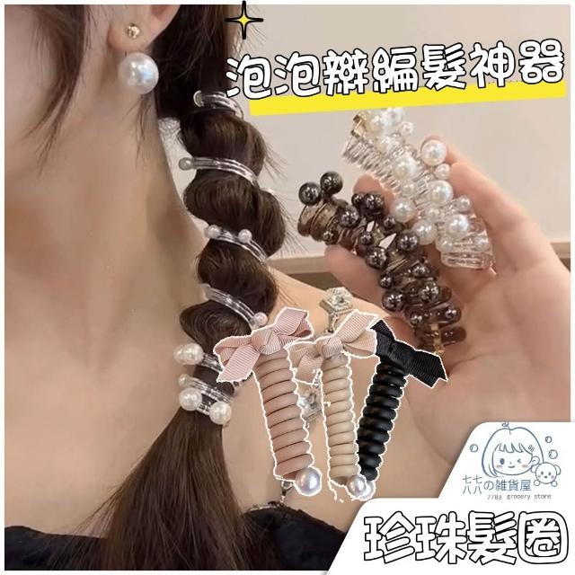 泡泡辮編髮 珍珠髮圈 包頭髮飾 電線髮束 電話線髮圈 韓系珍珠髮圈 髮繩 高級感頭飾 髮飾 氣質高馬尾