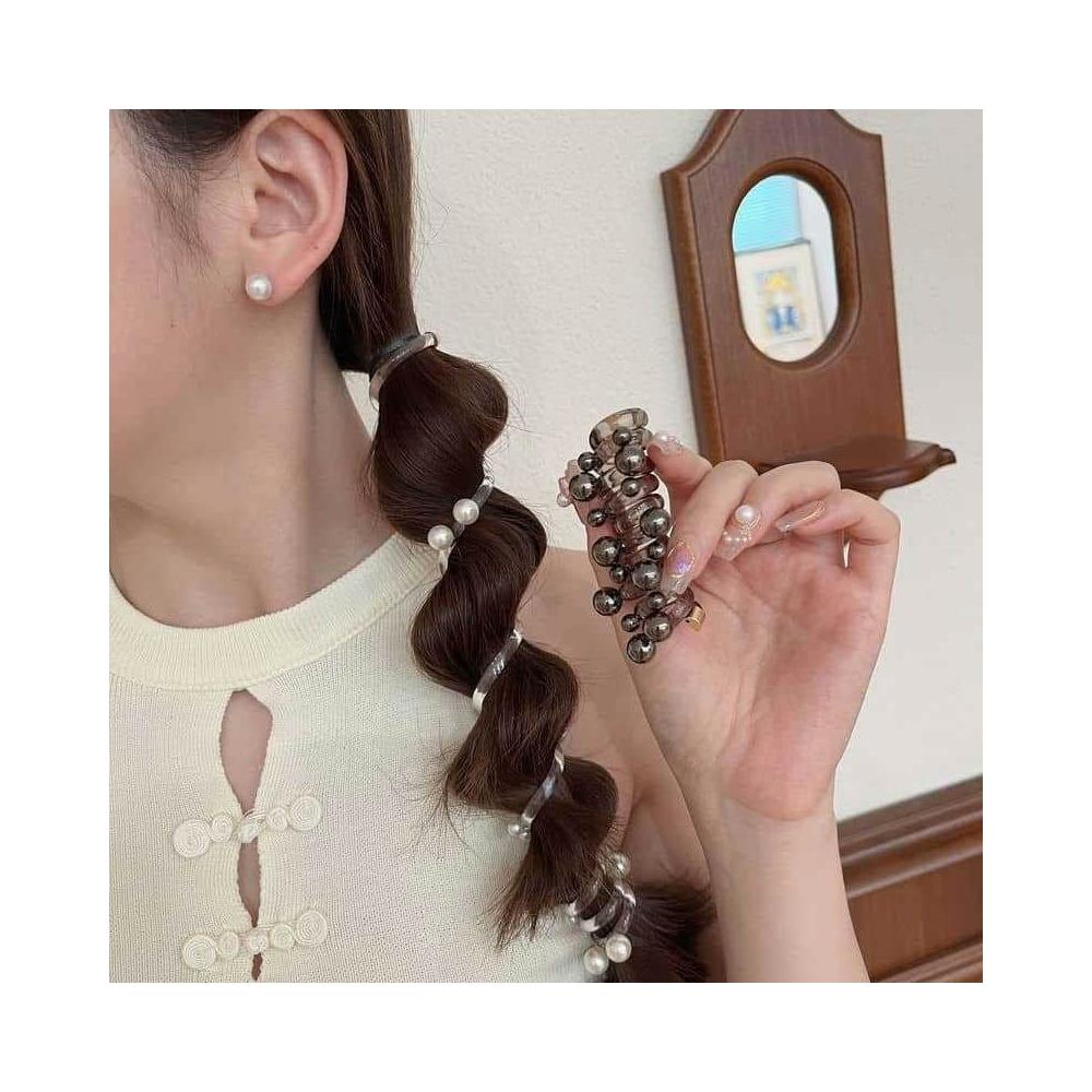 泡泡辮編髮 珍珠髮圈 包頭髮飾 電線髮束 電話線髮圈 韓系珍珠髮圈 髮繩 高級感頭飾 髮飾 氣質高馬尾