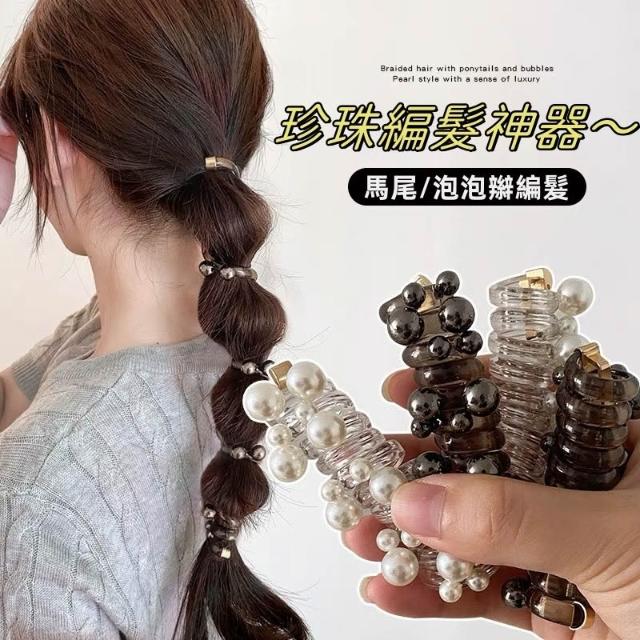 泡泡辮編髮 珍珠髮圈 包頭髮飾 電線髮束 電話線髮圈 韓系珍珠髮圈 髮繩 高級感頭飾 髮飾 氣質高馬尾