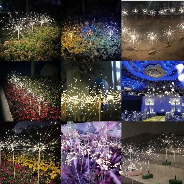 太陽能煙花燈 蒲公英彩燈 LED灯串 太阳能地插烟花灯 銅線燈串 滿天星 花园庭院装饰 节日装饰灯