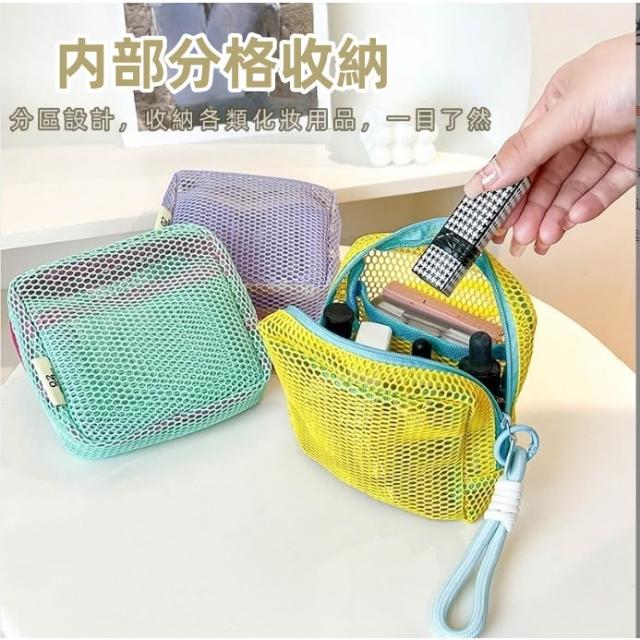 Ume優米大容量化妝包 化妝品收納包 便攜收納包 網格收納包 ins多巴胺色豆腐包 網格豆腐包 雜物收納