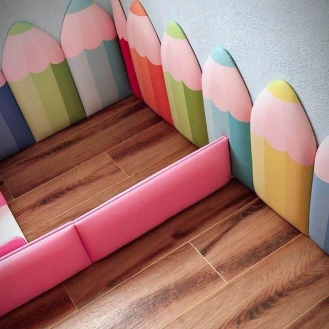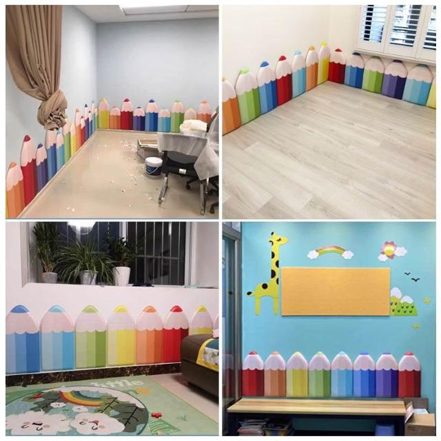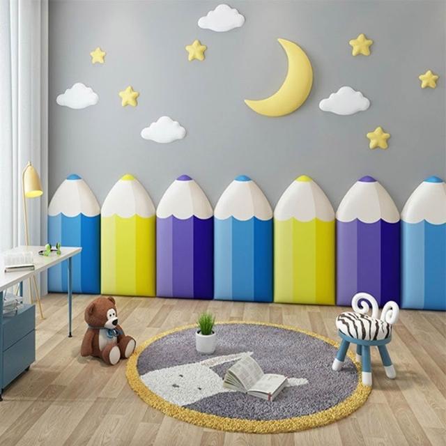 卡通鉛筆壁貼 墻面裝飾軟包 幼兒園防撞壁貼防水 防撞墻貼裝飾壁畫 3d立體壁貼 安全免釘壁貼 兒童房裝飾