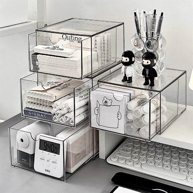 抽屜式雜物收納盒 桌面化妝品盒 多層防塵面膜透明盒子 壓克力透明化妝品收納盒 化妝品置物盒 文具收納盒