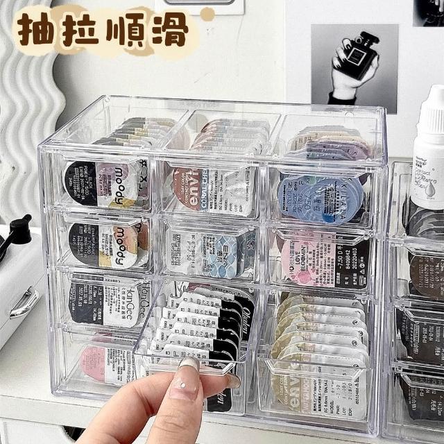 美瞳收納盒 日拋隱形眼鏡盒 多格亞克力大容量透明防塵多副裝整理盒 透明抽屜式收納盒 膠帶收納盒 壓克力置物盒