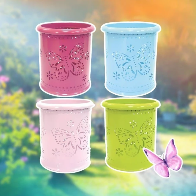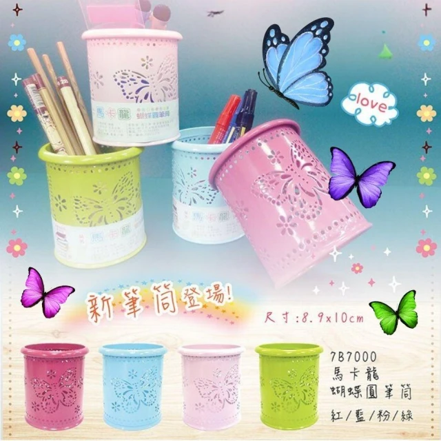 UBILIN優筆霖 蝴蝶筆筒 鉛筆筒 馬卡龍筆筒 收納筒 桌面收納 辦公用品 筆筒 鐵質筆筒 圓形筆筒 文具收納