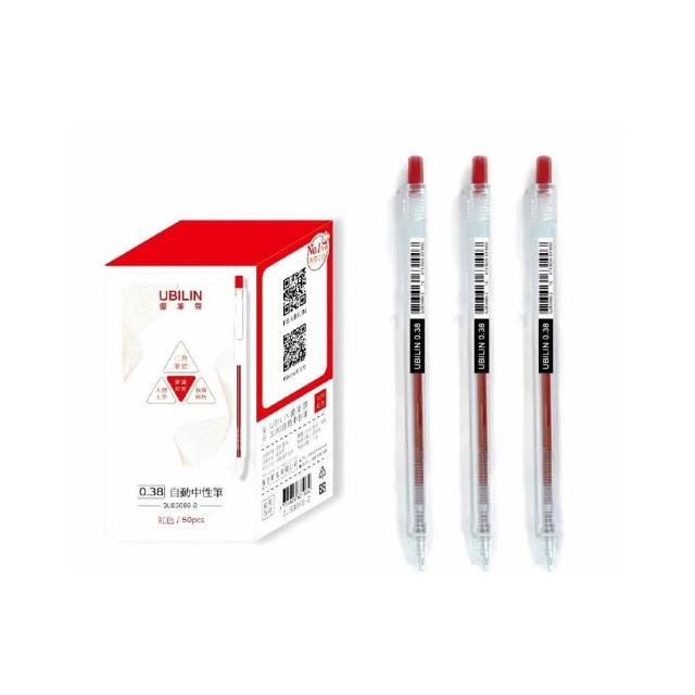 UBILIN優筆霖 0.38自動中性筆 50入盒裝 原子筆 0.38原子筆 筆 黑筆 藍色原子筆 紅色原子筆 新全文具