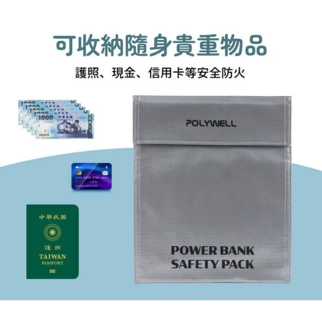POLYWELL行動電源安全收納袋 鋰電池防爆袋 絕緣保護 防火阻燃 耐高溫 各類電池適用 寶利威爾 收納袋 安全
