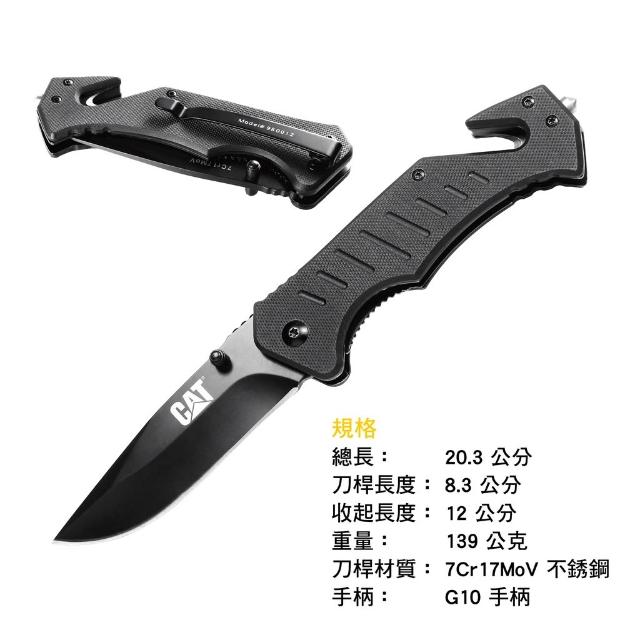 CAT 八吋多功能折疊刀 玻璃擊破器 安全帶切斷功能 露營小刀 求生工具 -980012