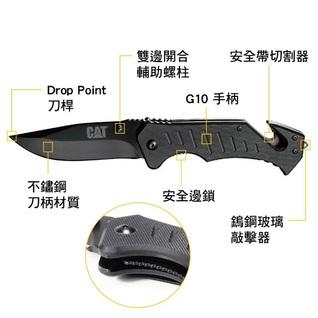 CAT 八吋多功能折疊刀 玻璃擊破器 安全帶切斷功能 露營小刀 求生工具 -980012