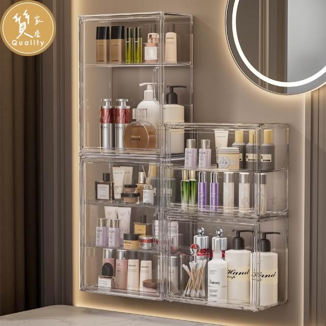 質。家居 壁掛透明收納盒 公仔盒 多功能收納盒 浴室壁掛盒 壁掛置物架 化妝品收納 保養品收納 壁掛桌面兩用 可疊收納盒