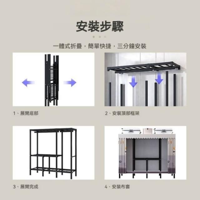 ⚡台湾現貨-12H發貨🚀 免安裝衣櫃 衣櫃衣櫥 全鋼架掛式 掛衣架 簡易佈衣櫃 加粗鋼管收納掛 衣櫃 防塵衣櫃 臥室衣