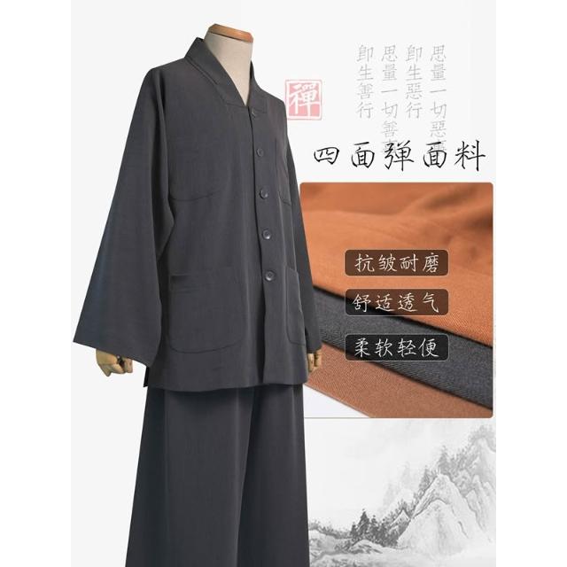 桃甜也居家生活 僧服春秋男女款高檔四面彈出家人師父和尚比丘尼禪修衣套裝小短褂