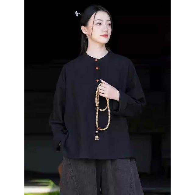 桃甜也居家生活 寺院拜佛素衣禪修服套裝棉麻茶服盤扣襯衫佛系禪意女裝居士服女款1