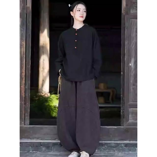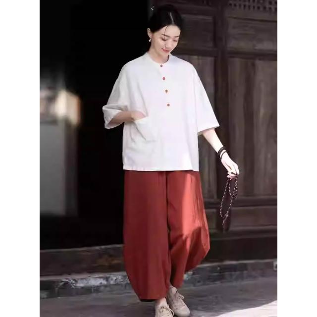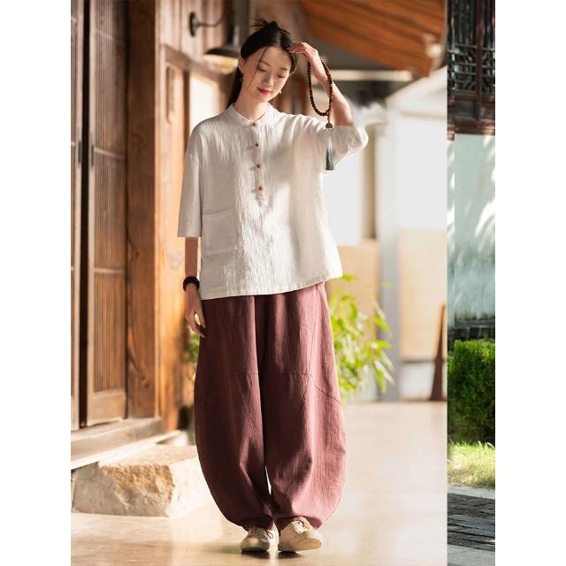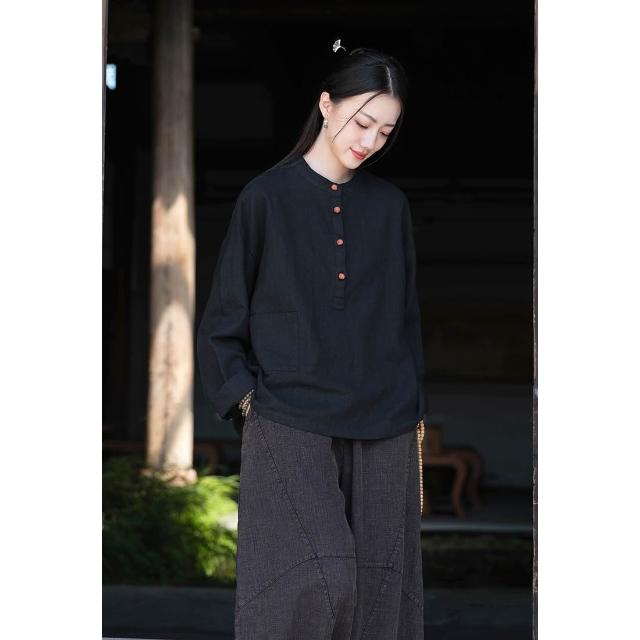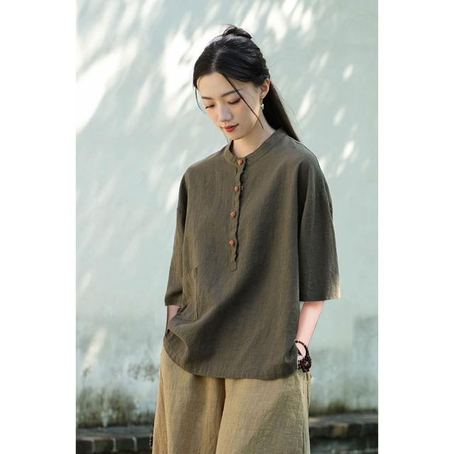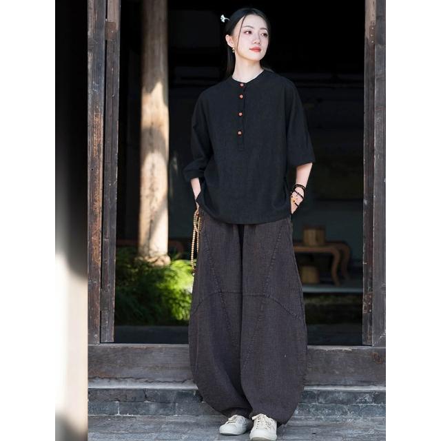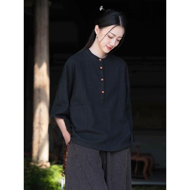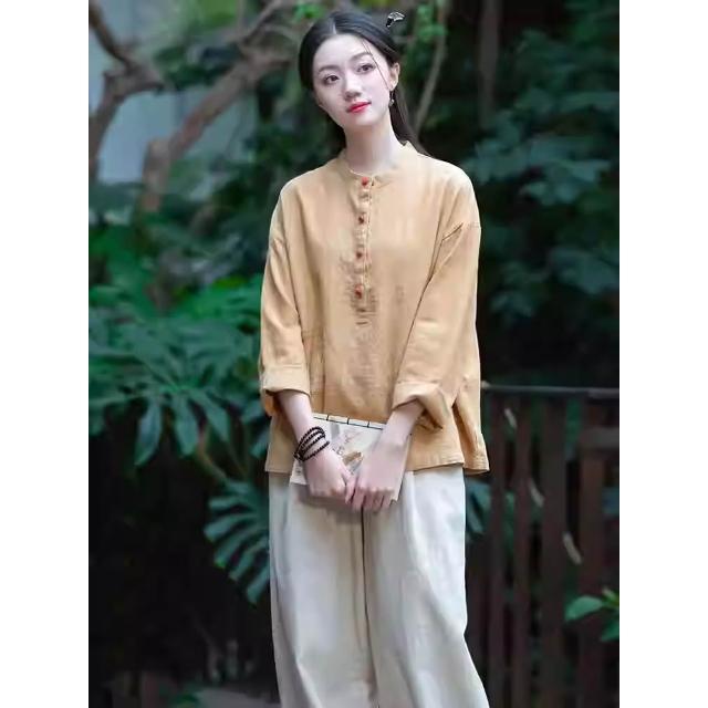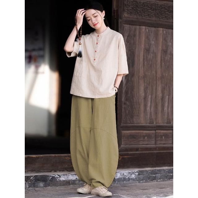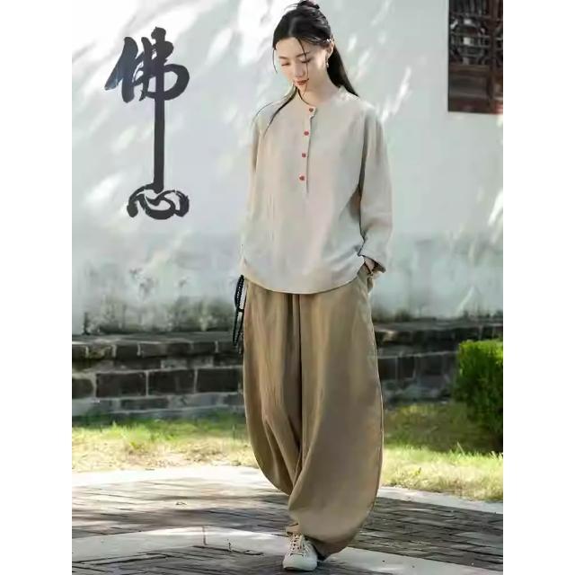 桃甜也居家生活 寺院拜佛素衣禪修服套裝棉麻茶服盤扣襯衫佛系禪意女裝居士服女款1