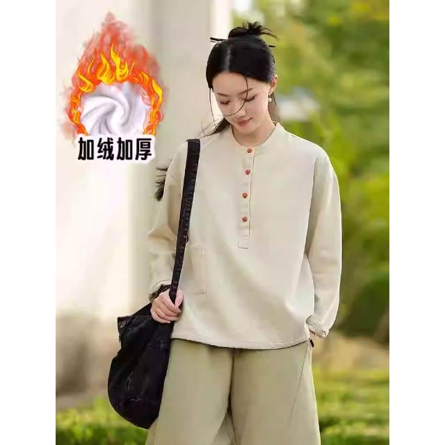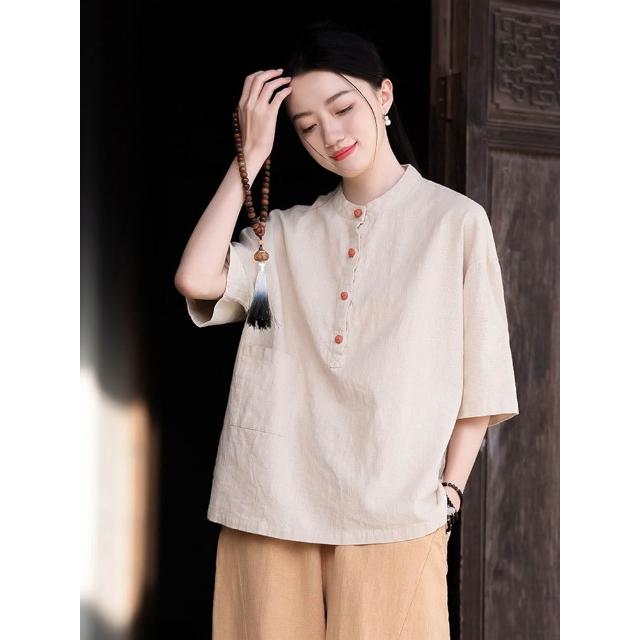 桃甜也居家生活 寺院拜佛素衣禪修服套裝棉麻茶服盤扣襯衫佛系禪意女裝居士服女款1