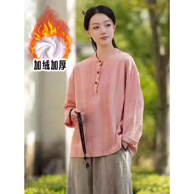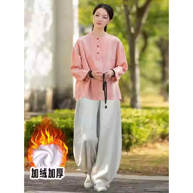 桃甜也居家生活 寺院拜佛素衣禪修服套裝棉麻茶服盤扣襯衫佛系禪意女裝居士服女款2