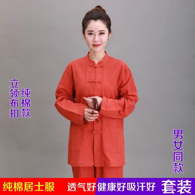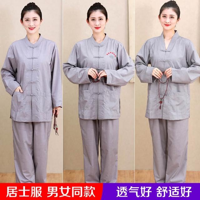 桃甜也居家生活 海青居士服女禪修服男棉麻套裝夏春季薄款僧盤扣海清長短袖衣禪意
