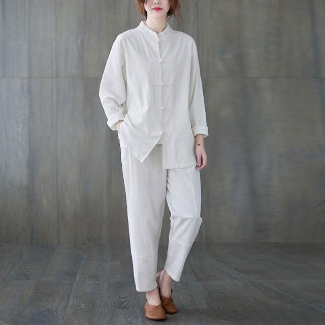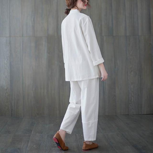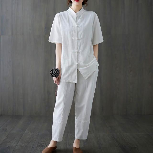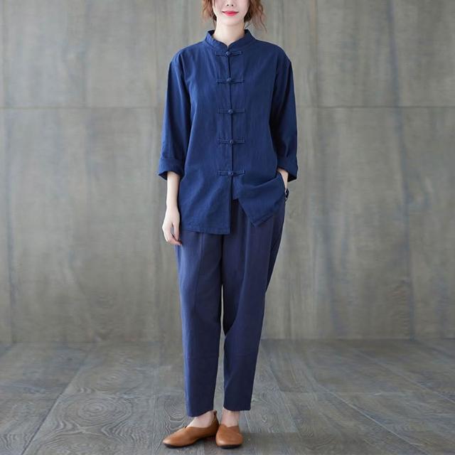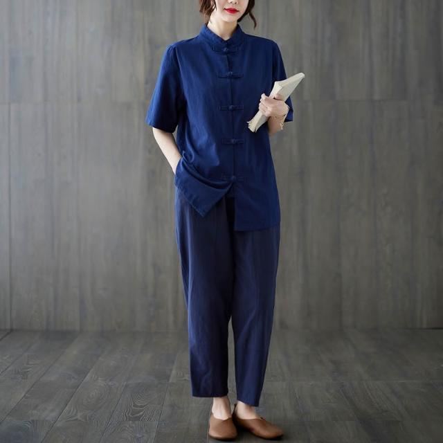 桃甜也居家生活 夏季中式棉麻復古盤扣居士服禪意寬鬆佛繫立領唐裝茶人服上衣女